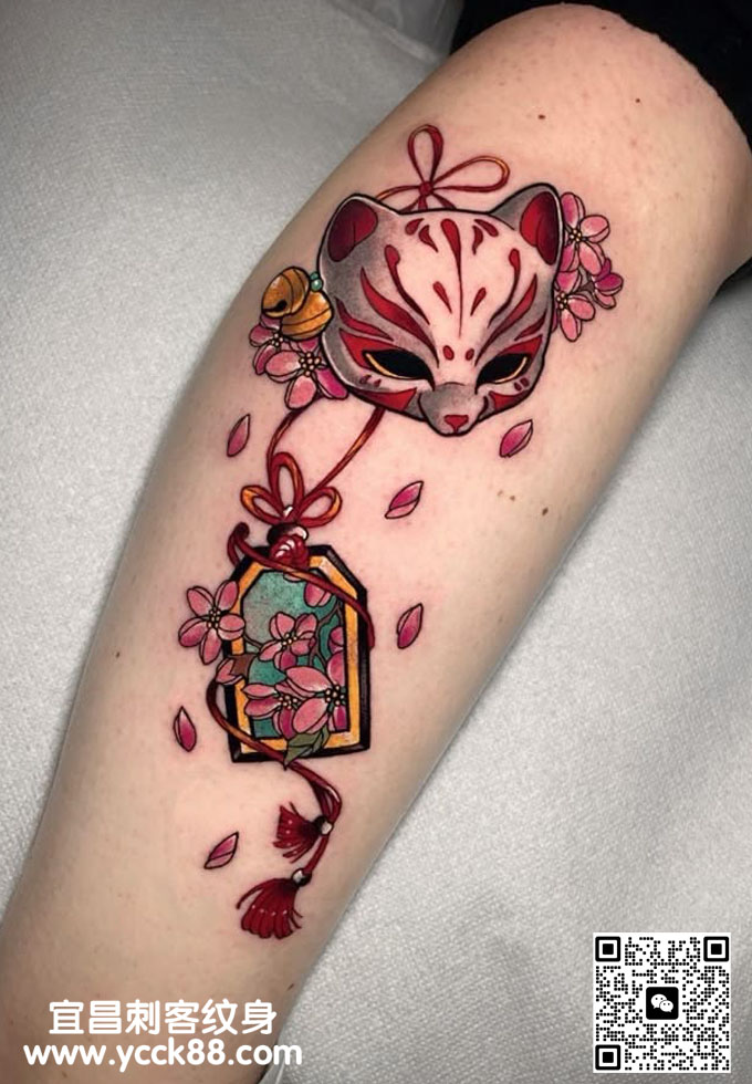 手臂日式狐狸纹身 查看更多人体个性纹身图案请登入宜昌刺客纹身网 www.ycck88.com