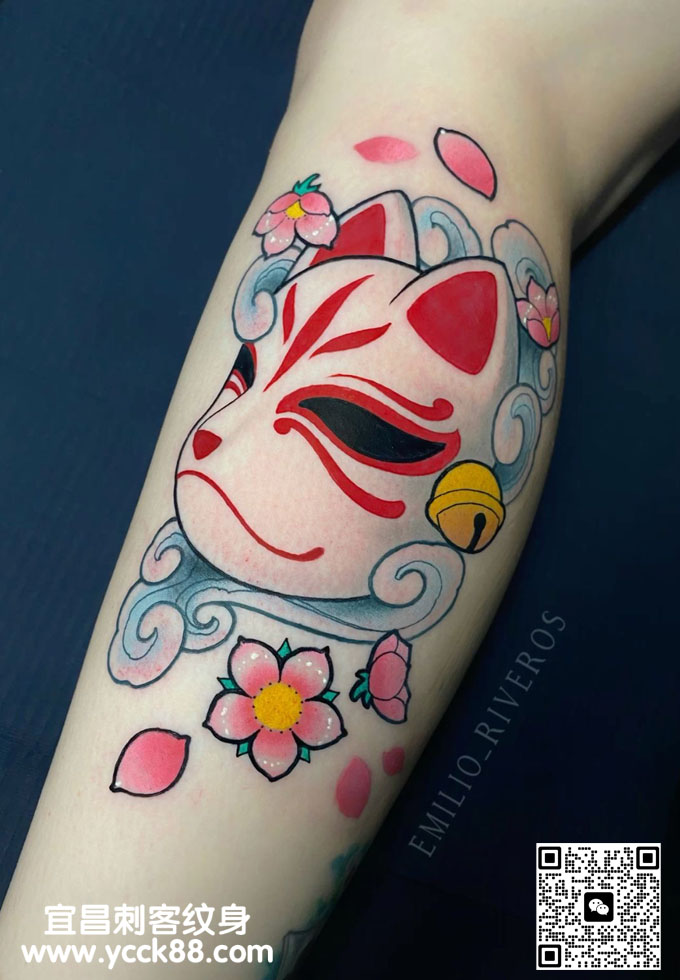 手臂日式樱花狐狸纹身 查看更多人体个性纹身图案请登入宜昌刺客纹身网 www.ycck88.com