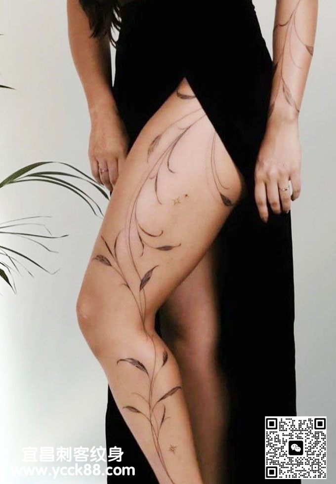 美女腿部抽象意识流花纹身 查看更多人体个性纹身图案请登入宜昌刺客纹身网 www.ycck88.com
