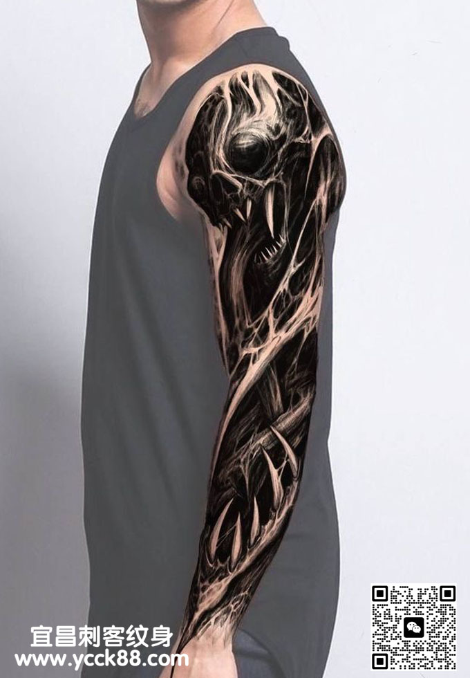 花臂骷髅纹身图案 查看更多人体个性纹身图案请登入宜昌刺客纹身网 www.ycck88.com