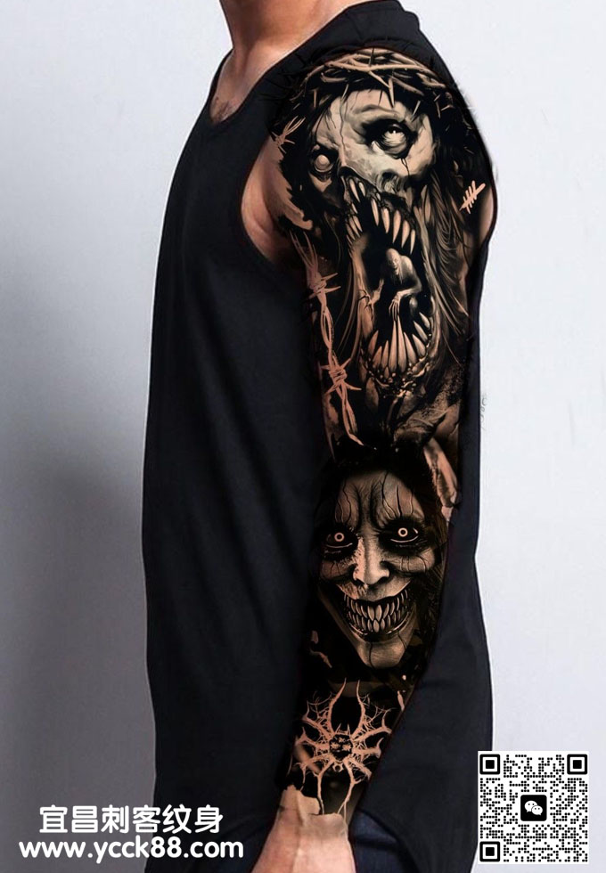 花臂鬼面纹身图案 查看更多人体个性纹身图案请登入宜昌刺客纹身网 www.ycck88.com