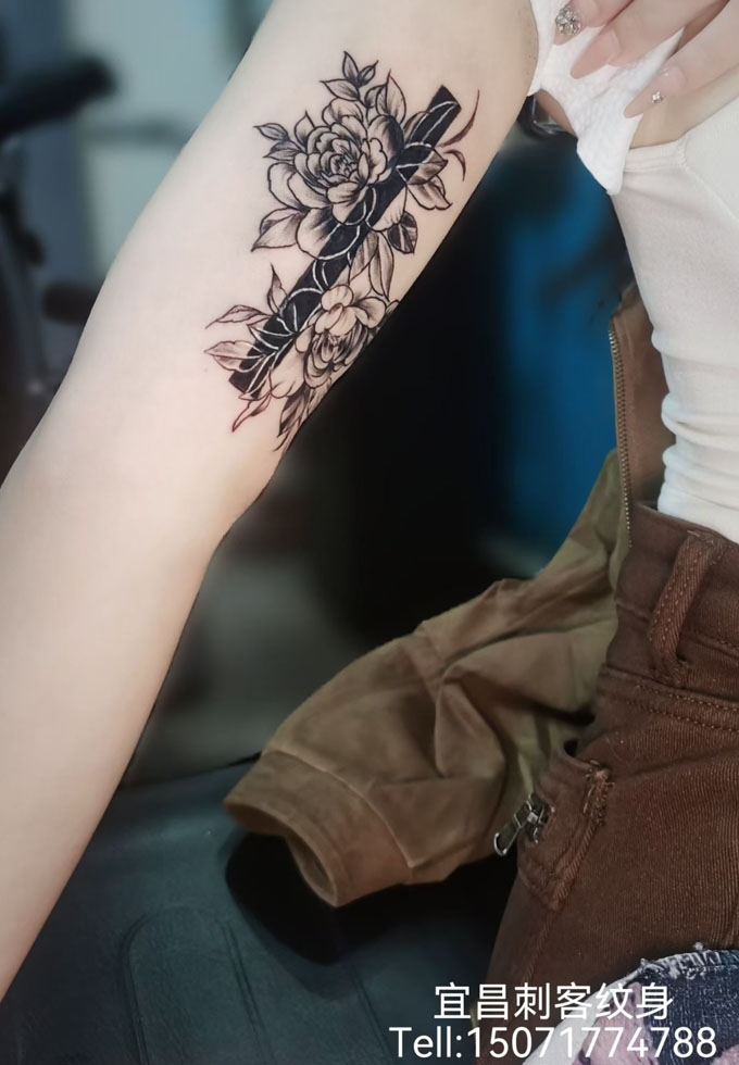 手臂内侧素花纹身 更多纹身图案请登入宜昌刺客纹身网 www.ycck88.com
