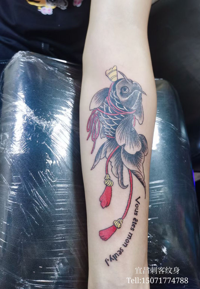 手臂鱼纹身 更多纹身图案请登入宜昌刺客纹身网 www.ycck88.com