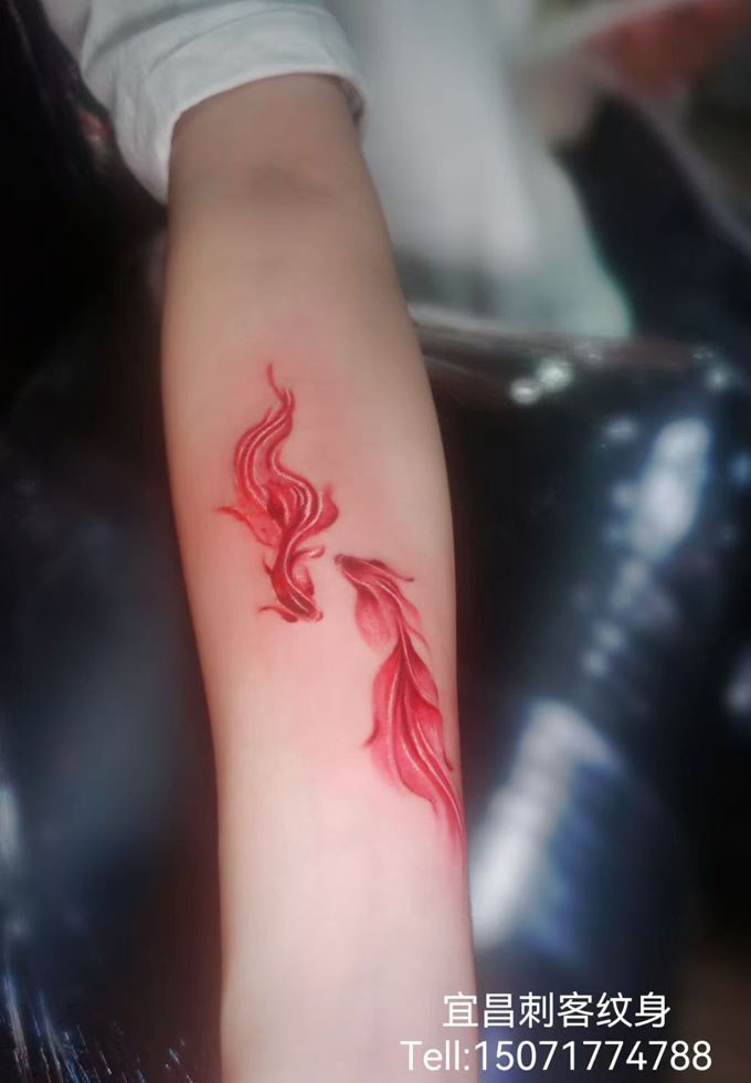 手臂招财鱼纹身 更多纹身图案请登入宜昌刺客纹身网 www.ycck88.com